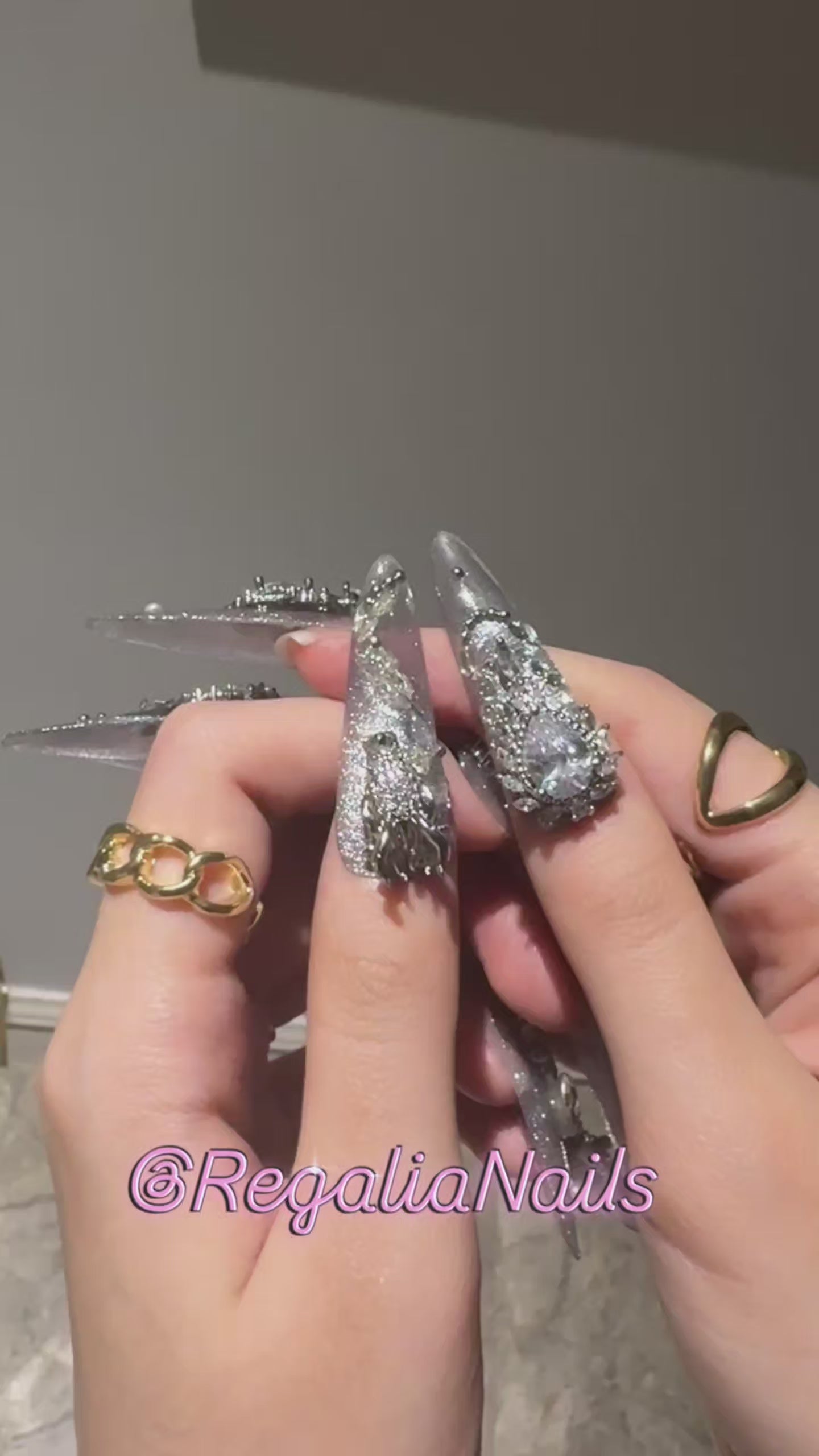 Step into regal luxury with our Dragon's Tear Platinum press-on nails, designed to captivate like no other.